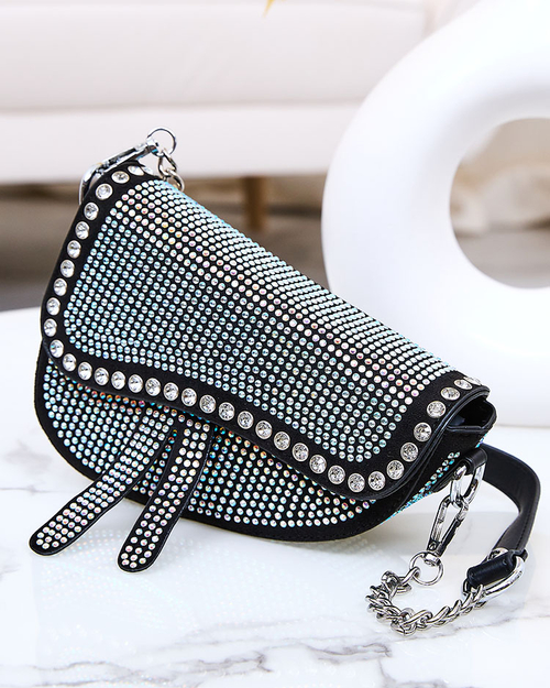 Royalfashion Black women's handbag with pearl zircons