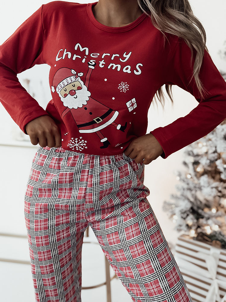 - Christmas women's 2-piece pajamas made of cotton fabric finished with decorative print. The set features a long-sleeved blouse and pants with an elastic waistband and straight legs.