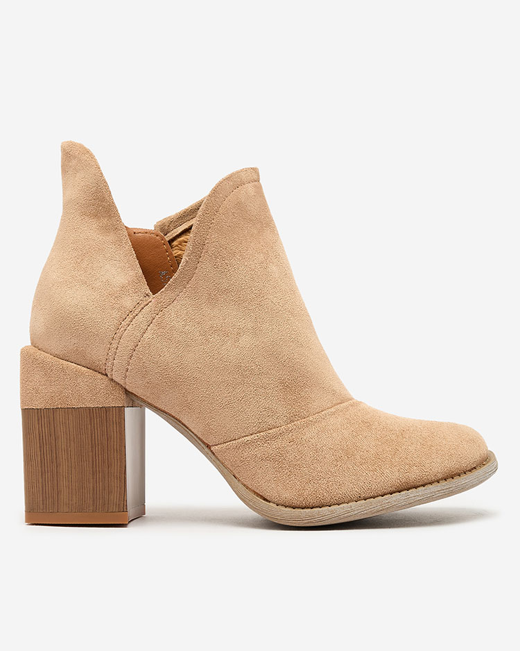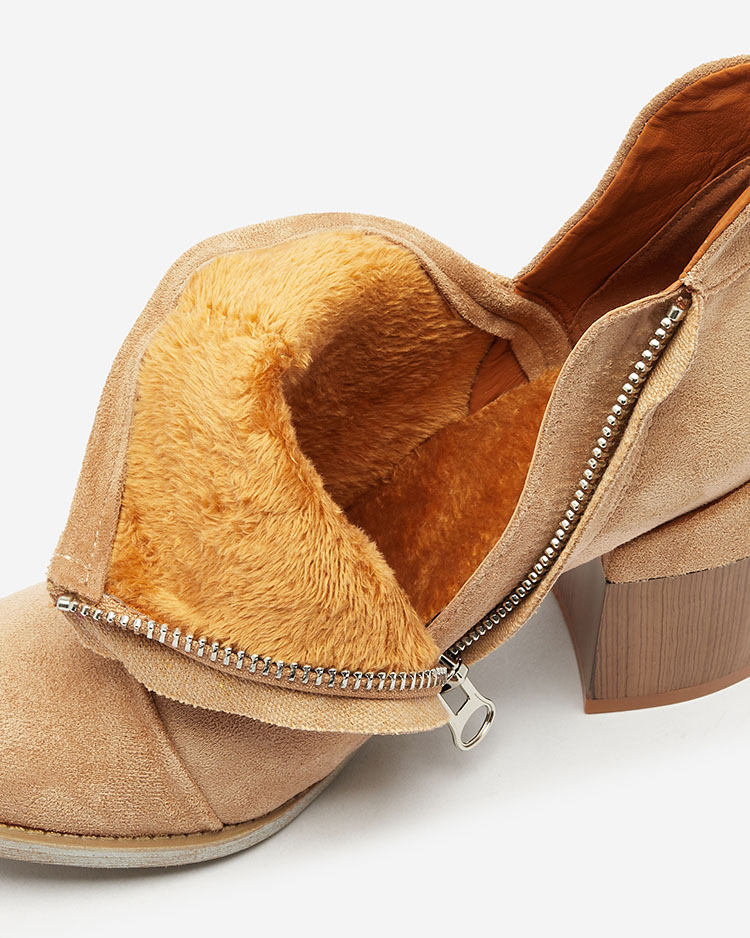 - Stylish women's eco-suede boots are ideal for colder days. The upper is zippered, fur inside. Model on a higher post and with a round nose. Super addition to your casual outfits!