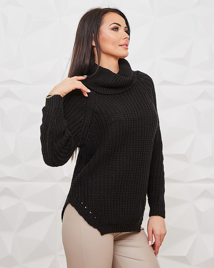 - This classic sweater is the essence of comfort and charm. Made of soft material, the sweater features a turtleneck and long sleeves. The knitted plaid adds a unique charm to it!
