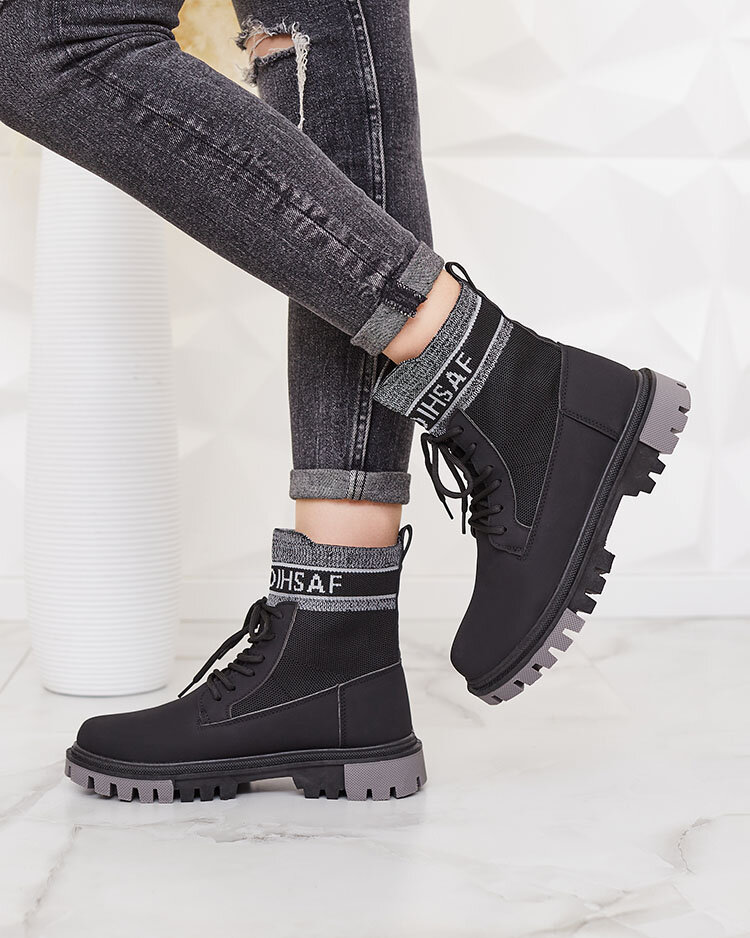 - Women's trekking trappers with lace-up upper. The material of construction is matte eco-leather, and fabric. The middle of the shoes is insulated with fur. Perfect for the winter time!