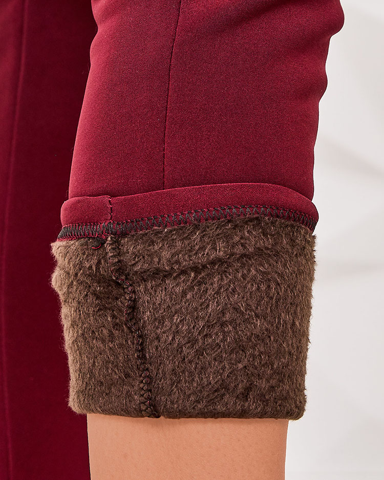 - Stylish women's teggings pants, made of stretch fabric insulated with fur. The model has a wide elastic waistband and 2 slip pockets on the back. Decorated with buttons. Must have of this season!