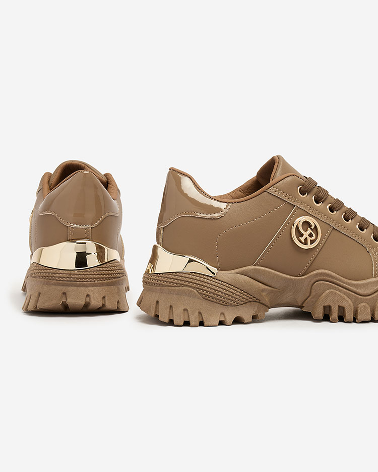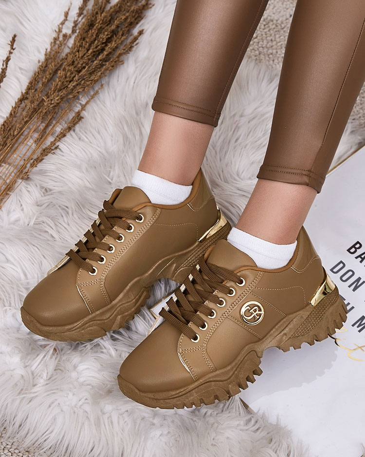 - Women's sneakers on a thicker sole - the perfect combination of style and comfort. Footwear made of eco leather. Lace-up model, has a fabric insole. Ideal for active people!