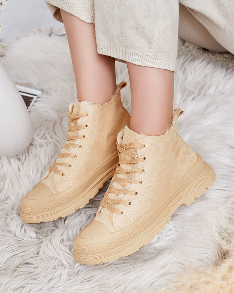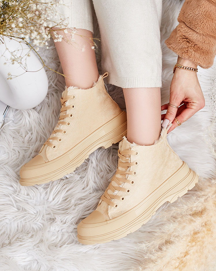 • Unique women's high sport shoes a'la sneakers. The lace-up upper is made of ecological suede leather, the middle is insulated with soft fur. Solidly made and very comfortable thanks to the soft rubber sole!