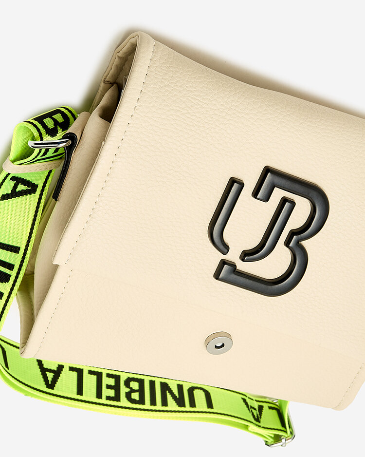 • Unique small women's handbag made of eco leather with neon yellow adjustable strap. The model has 4 pockets. A combination of elegance and sporty style!
