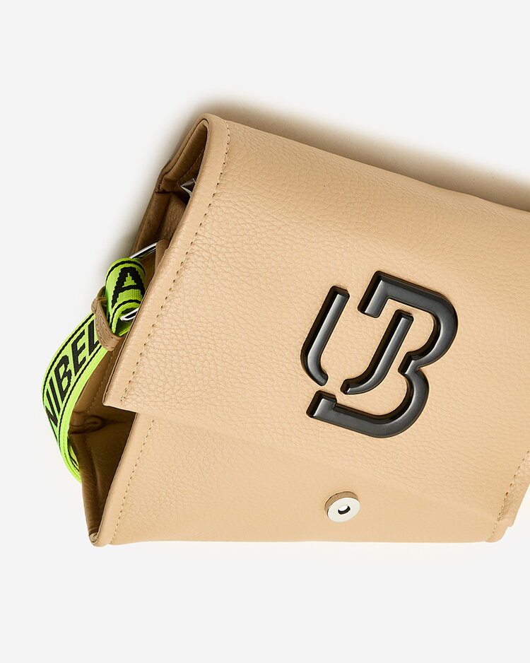 - Unique small women's handbag made of eco leather with neon yellow adjustable strap. The model has 4 pockets. A combination of elegance and sporty style!