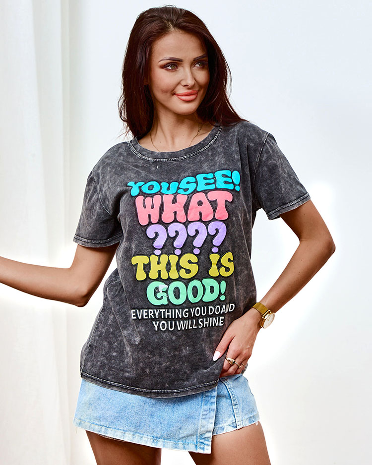 - Casual women's printed t-shirt with short sleeves. Made of cotton fabric. Perfect base for many everyday looks! NOTE: Measurement accuracy (+/-) 1 cm. Dimensions measured flat.