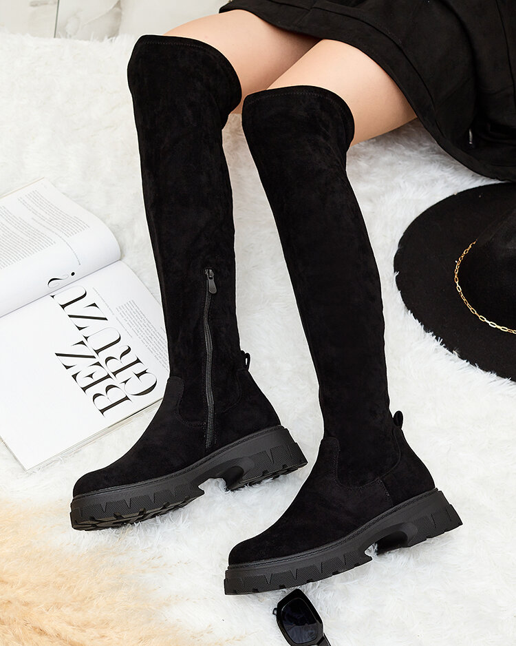 • Long women's boots on a thicker sole, upper made of eco-suede. The model has a fur trim. The boots are zippered to the middle of the calf. Perfect base for many winter outfits!