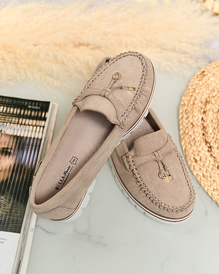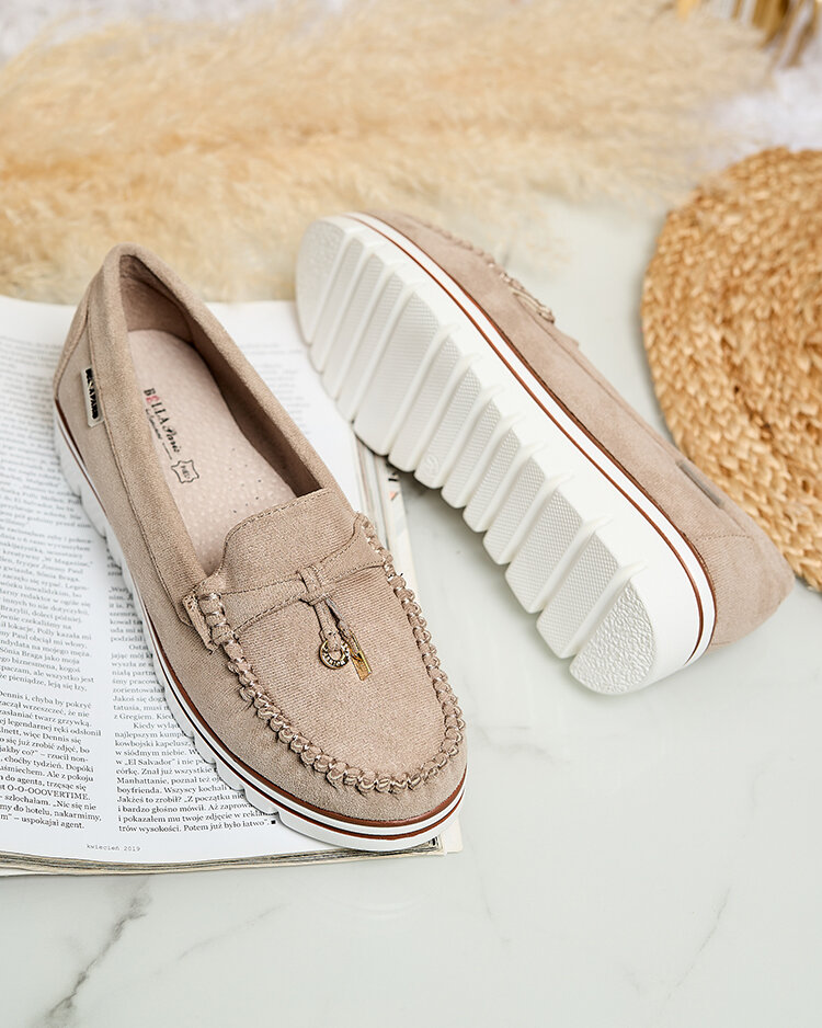 - Casual women's moccasins on a flat sole. The model is made of organic suede leather, the insole is natural leather. Perfect base for every day!