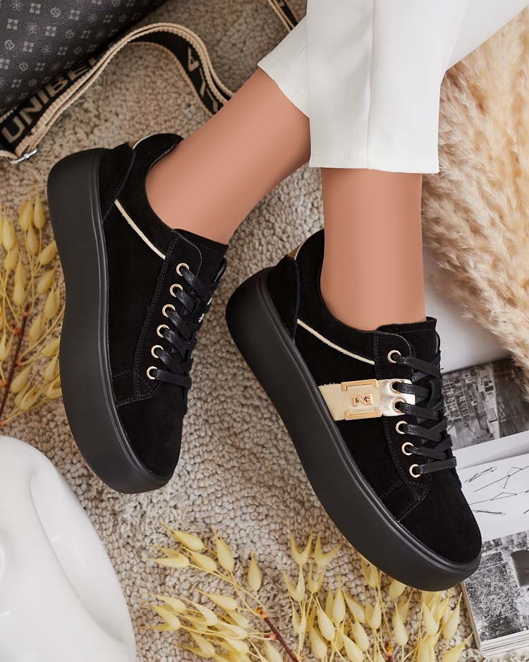 - Women's sports shoes made entirely of natural leather. Model on a thicker sole. The upper is laced. They will fit perfectly to everyday styling!