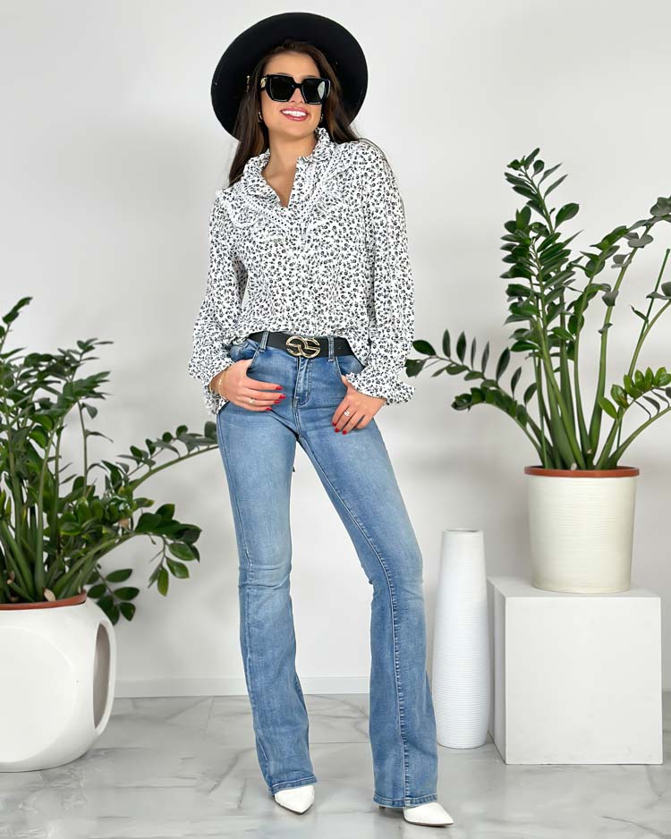 - Sensational women's print shirt with long sleeves. The model with a collar, is buttoned. Perfect for everyday wear!