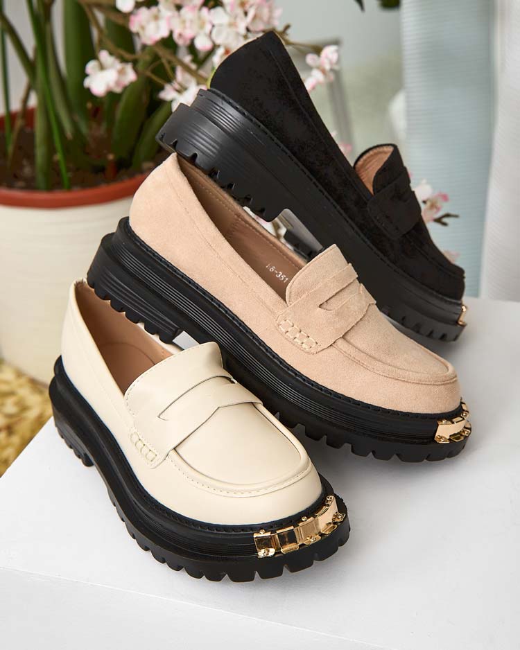 • Amazing women's moccasins with a thicker sole, made of ecological suede leather and an eco-leather insole. They will add style to any outfit!