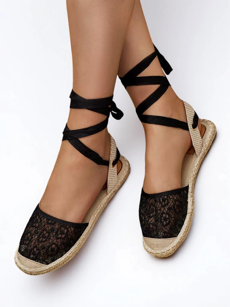 - Lightweight women's espadrilles made of fabric a'la mesh. The sole is decorated with jute cord, and the soft insole is covered with fabric material. They have a round nose and decorative binding. Perfect for summer!