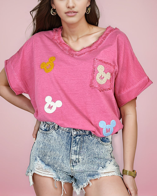 - Casual women's t-shirt with patches on short sleeves. Perfect base for many everyday looks! NOTE: Measurement accuracy (+/-) 1 cm. Dimensions measured flat.