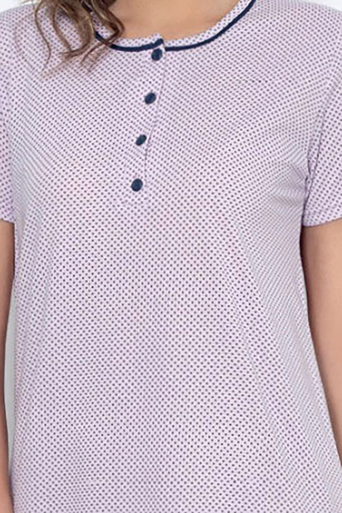 - Very comfortable short sleeve shirt. Made of 100% cotton and finished with a decorative print. The model has a round neckline with decorative buttons. NOTE: Measurement accuracy (+/-) 1 cm.