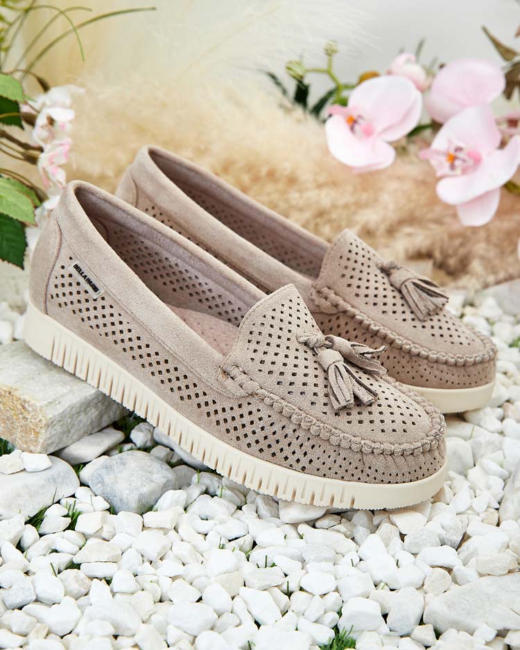 • Openwork women's moccasins on a flat sole. The model is made of ecological leather. Inside the insole made of natural leather. Perfect base for every day!