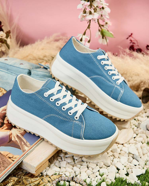 - Women's fabric platform sneakers - a perfect combination of style and comfort. Lace-up model, has a fabric insole. Ideal for active people!