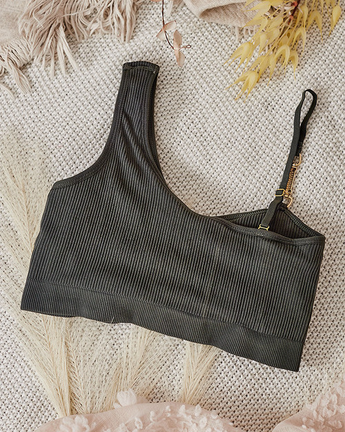 Royalfashion Women's ribbed bra with decorative strap