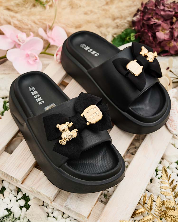 - Great women's platform rubber flip-flops. They feature a decorative bow on the upper. A perfect choice for the vacations!