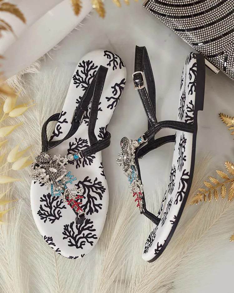 - Fashionable flat women's flip flop sandals, made entirely of eco leather. Fastened with a buckle with buckle decorations that add subtlety. Perfect for summer walks and special occasions!