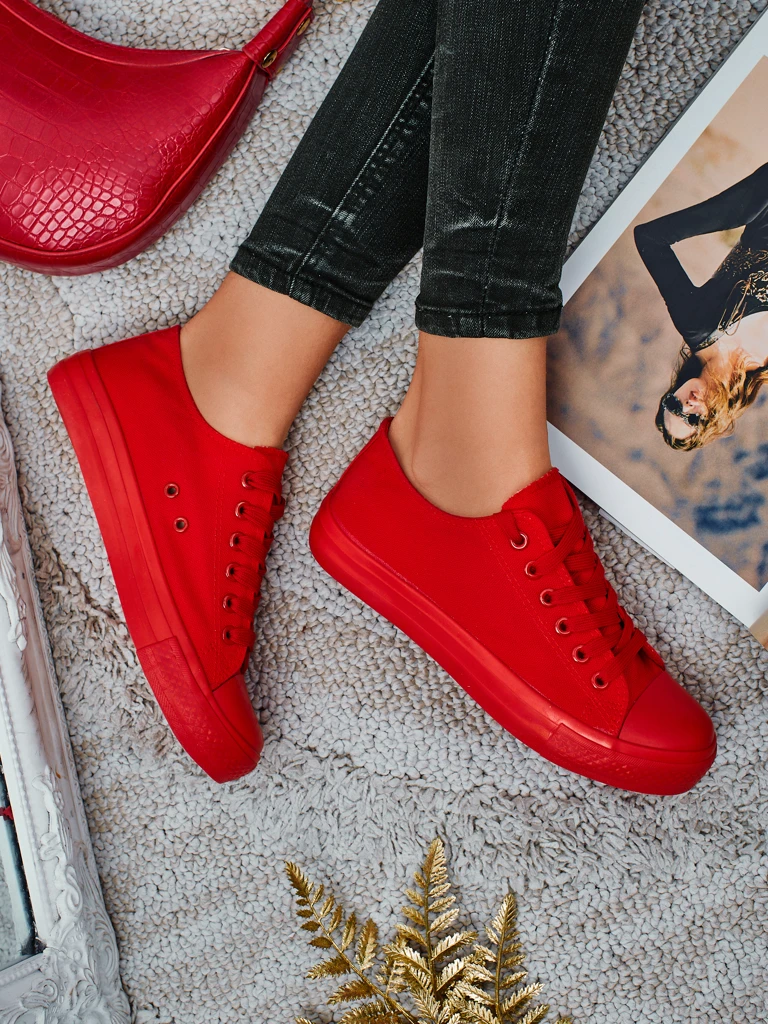 - Stylish women's sports sneakers made of fabric material. The model on a comfortable sole. The upper is laced. Great for creating casual outfits!