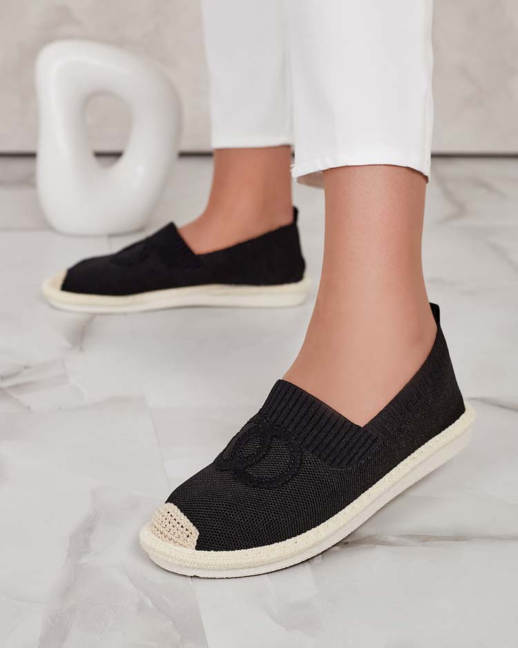- Unique women's espadrilles made of fabric and fabric insole. Flat sole decorated with jute cord provides comfort. Slip-on model. A perfect addition to summer styles!