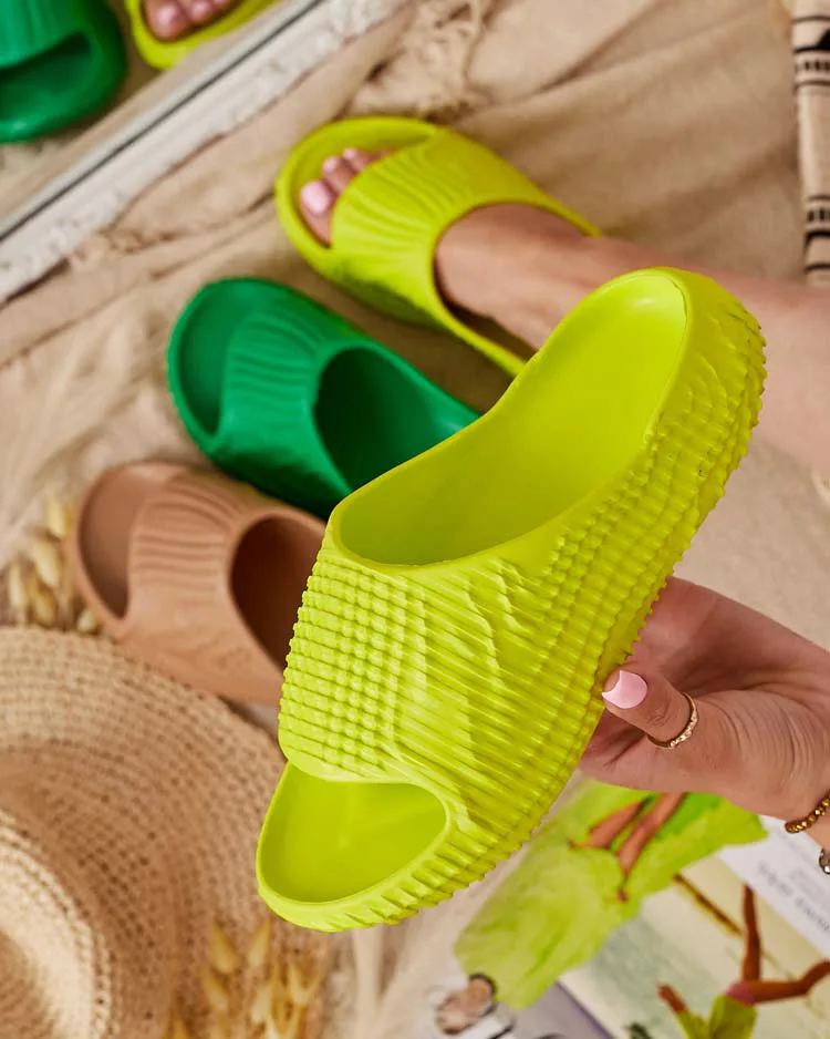 • Great women's rubber flip-flops on a flat sole. They feature a decorative embossed rubber upper. A perfect choice for the vacations!