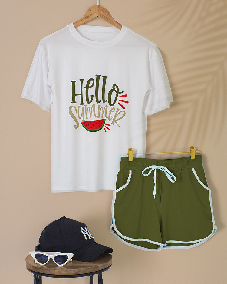 - Women's set made of pleasant material. The model has a print. Blouse with short sleeves and short shorts with elastic waistband. Feel the summer in this wonderful set!