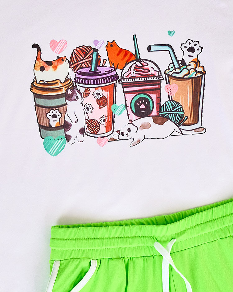 - Women's set made of pleasant material. The model has a decorative print. Blouse with short sleeves and short shorts with elastic waistband. Feel the summer in this wonderful set!