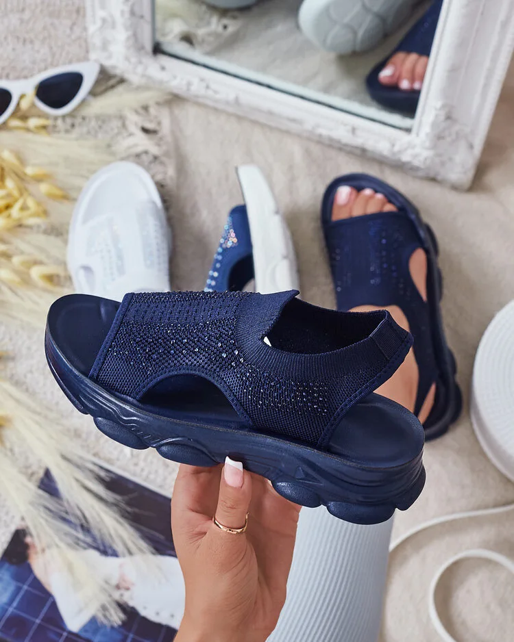 • Unique sandals with sequin upper, on a thick sole made of elastic fabric and eco leather insole. Slip-on model. A combination of style and comfort!