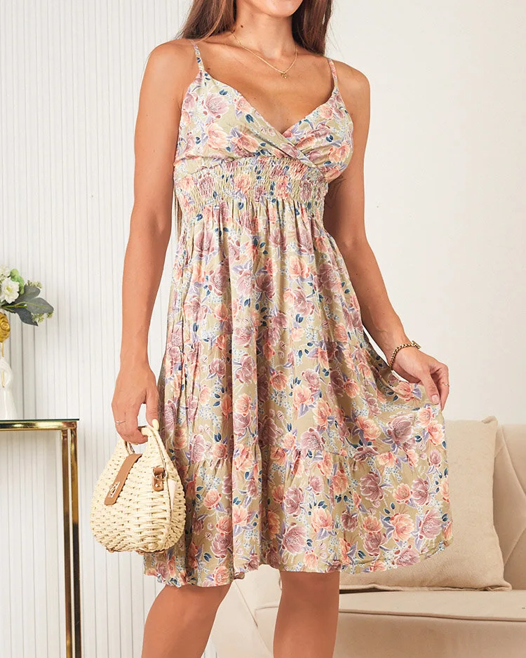 • Women's knee-length dress with straps and V neckline. The model has a decorative floral pattern and elastic at the width of the back. Must have of this season! NOTE: Measurement accuracy (+/-) 1 cm. Dimensions measured flat.
