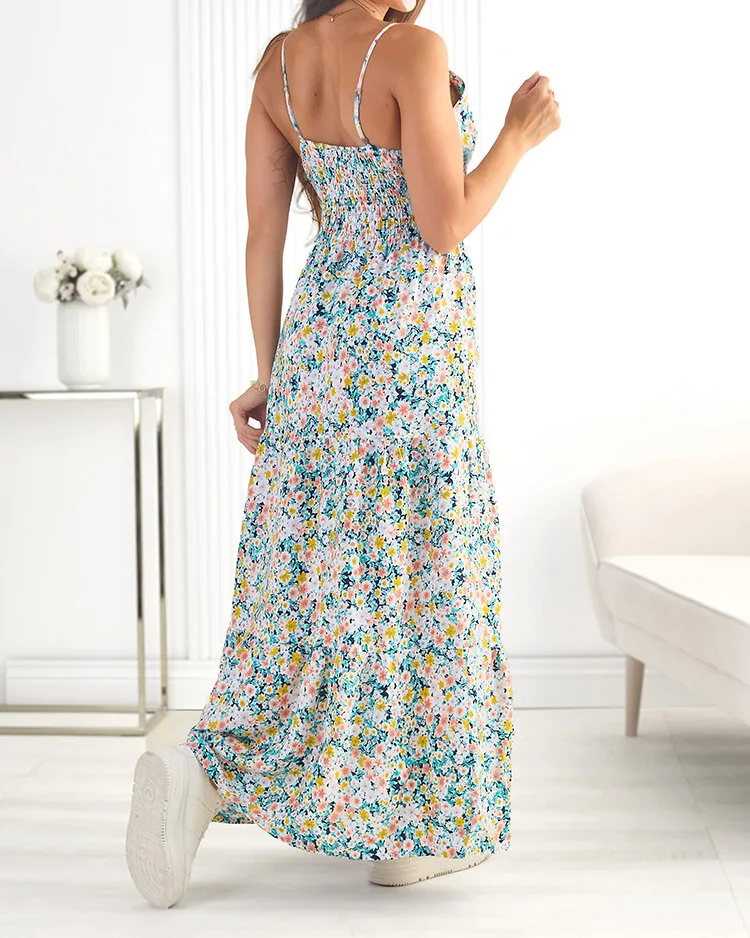 - Patterned women's midi length dress made of pleasant cotton fabric. Model with adjustable straps, with a v-neck neckline and an elastic waist width. Wear it with sandals! NOTE: Measurement accuracy (+/-) 1 cm.