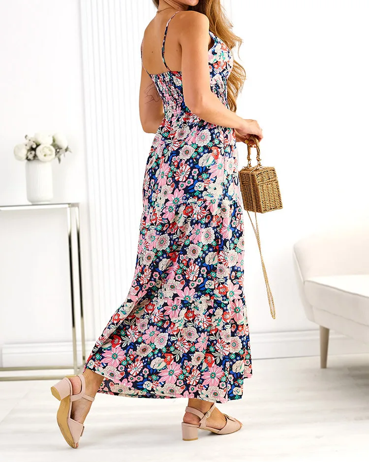 - Patterned women's midi length dress made of pleasant cotton fabric. Model with adjustable straps, with a v-neck neckline and an elastic waist width. Wear it with sandals! NOTE: Measurement accuracy (+/-) 1 cm.
