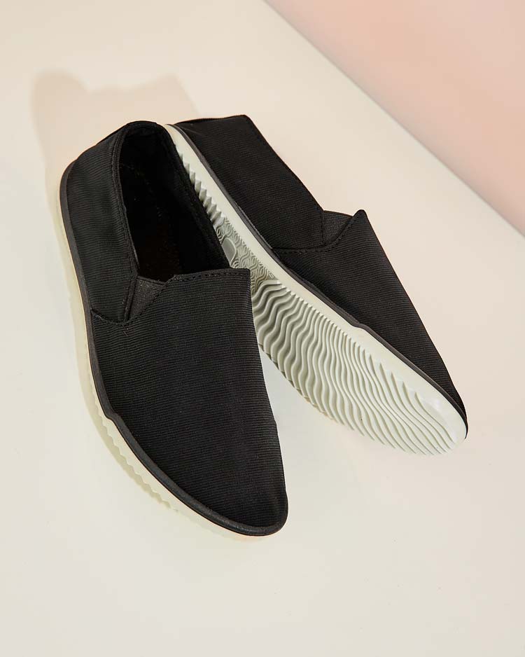 - Lightweight women's sneaker style sports shoes on a flat sole. Slip-on upper made of fabric. Inside the insole made of fabric material. Great for summer walks!