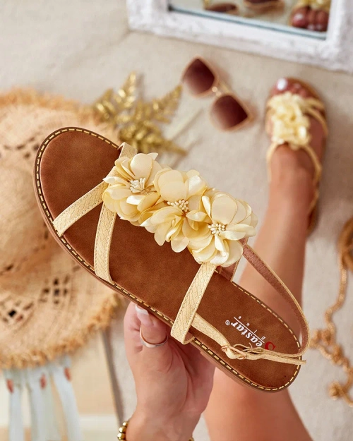 • Women's sandals with decorative upper- are ideal for hot summer days. The model entirely made of ecological leather. Footwear fastened with a buckle. Wear them with short shorts!
