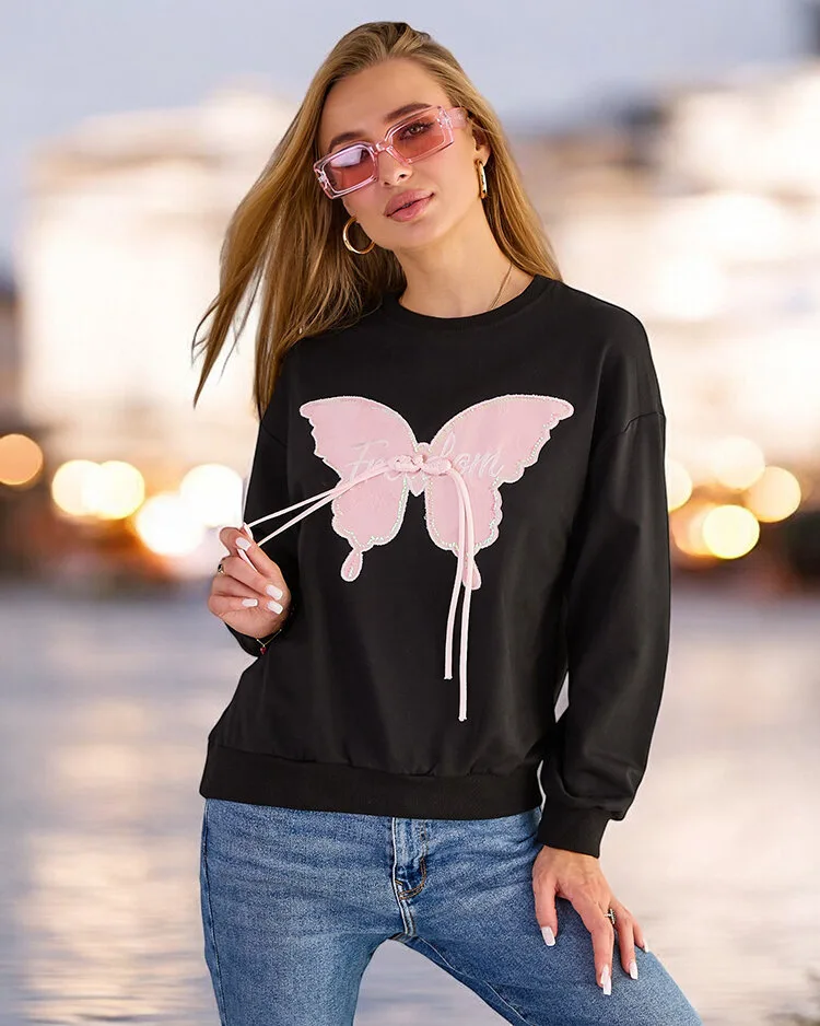 • Add flair to your outfits with our thinner sweatshirt, adorned with a butterfly patch. Insertable over the head, with a round neckline and long sleeves. Perfect for every day when you want to feel casual yet stylish!