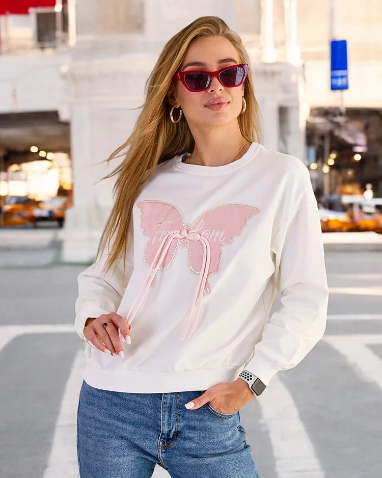 • Add flair to your outfits with our thinner sweatshirt, adorned with a butterfly patch. Insertable over the head, with a round neckline and long sleeves. Perfect for every day when you want to feel casual yet stylish!
