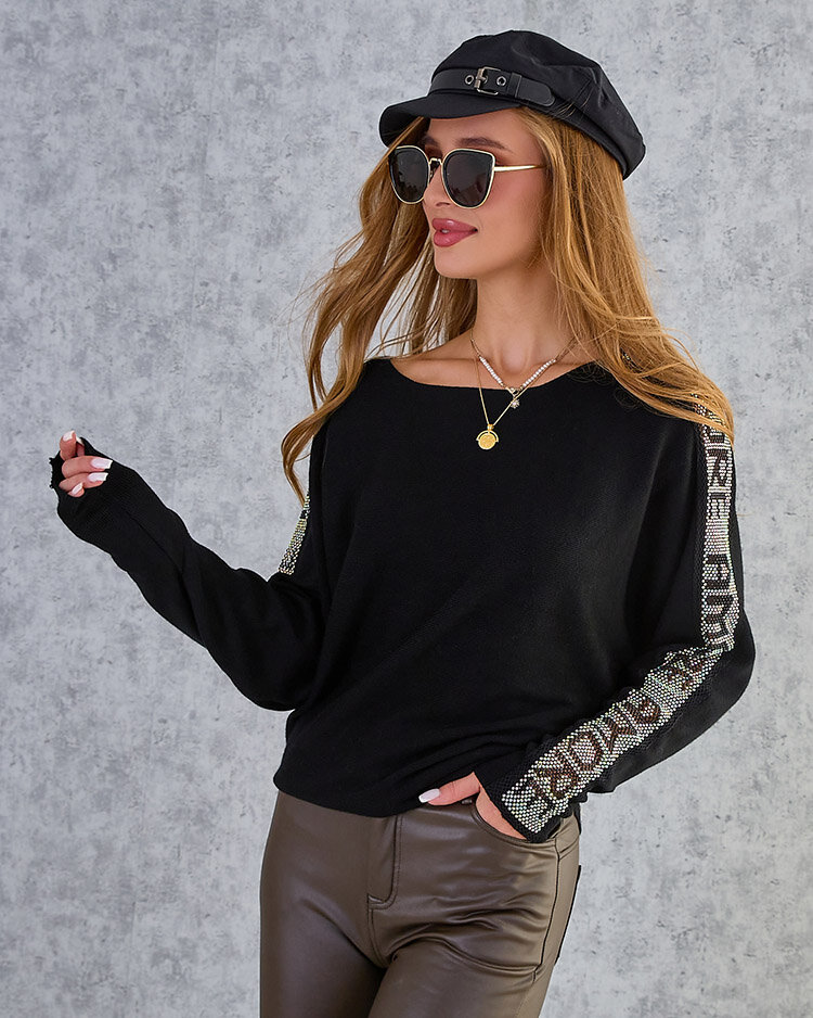 - Women's sweater with round neckline made of pleasant fabric. The model has long sleeves and is decorated with zircons. Must have of this season!