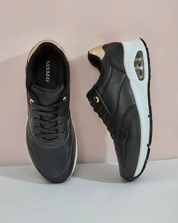 - Fashionable women's sports sneakers on a thicker sole, made of ecological leather. Inside fabric insole, laced model. They will be a great decoration for everyday styling.