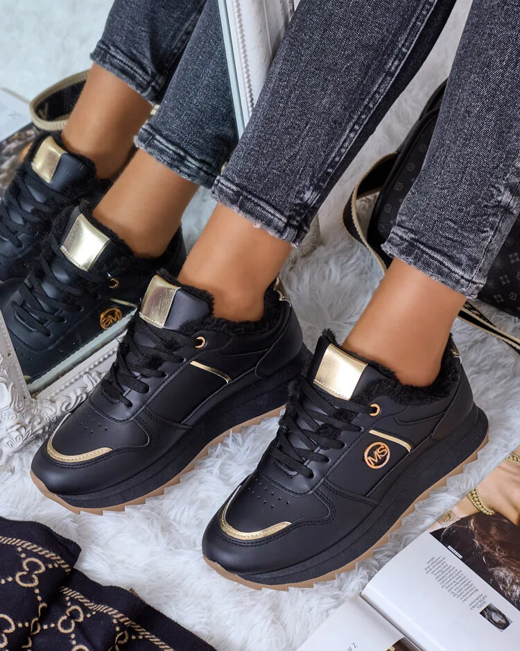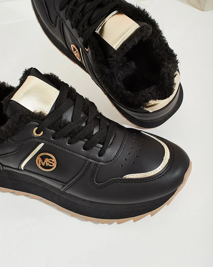 - Women's sporty sneakers on a thicker sole. Lace-up upper, made of ecological leather. Interior fully insulated with fur. Ideal for colder days!