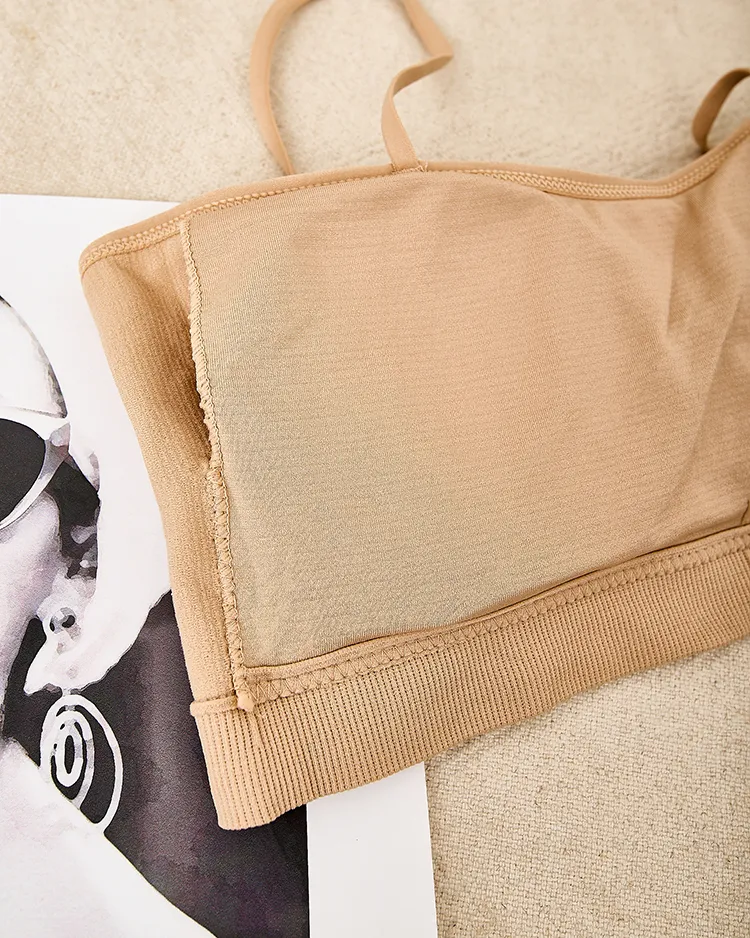 - Classic women's sports bra made of pleasant and elastic material. Model with thin, non-adjustable straps and with removable inserts, finished with elastic at the bottom. Perfect for everyday wear! NOTE: Measurement accuracy (+/-) 1 cm.