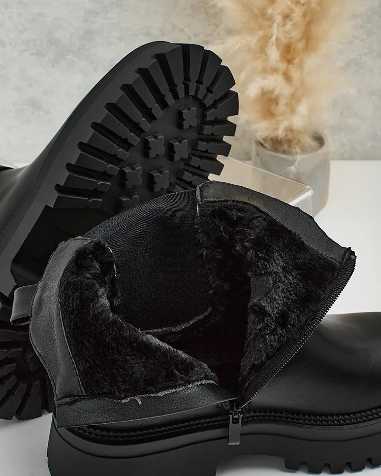 • Boots on a thicker sole - style and comfort in one. Elastic insert on the side and zipper closure for easy wearing. Entirely made of eco leather and fabric insole. This model will give you confidence!