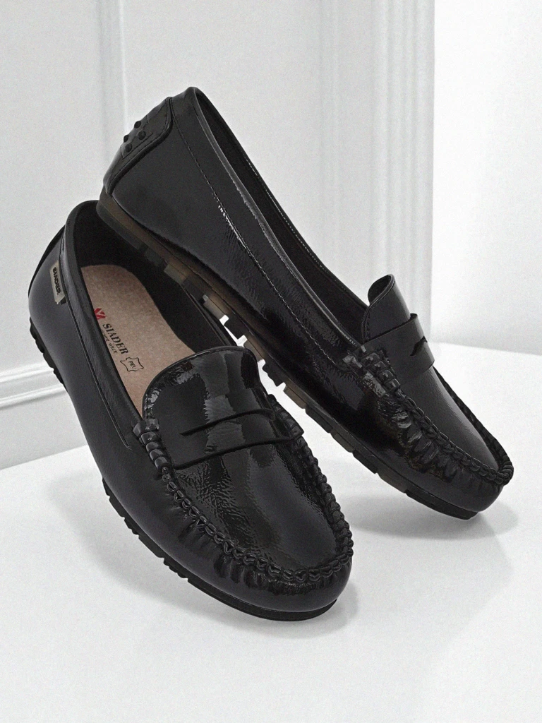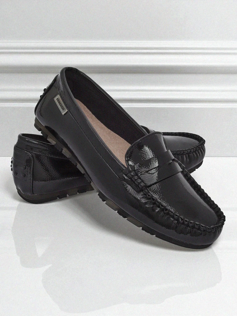 Women's Cyra Nero Moccasins made of patent eco-leather, classic Italian style