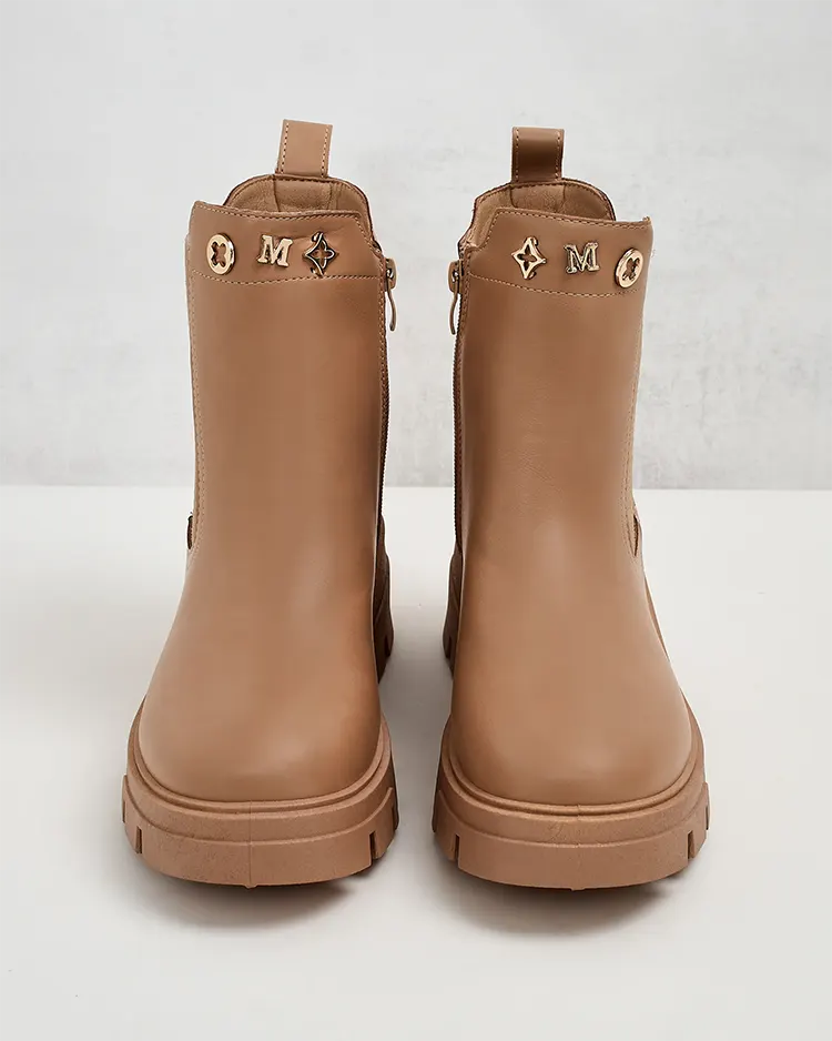 - Women's boots on a thicker sole, made of eco leather. The inside is lined with soft fur, slip-on model. Perfect for autumn!