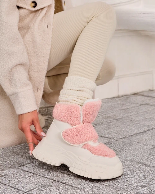 • Timeless women's snow boots. The upper is made of ecological leather with inserts a'la sheepskin. Insulation in the form of fur inside, the shoes have a Velcro closure. Ideal for the colder season!