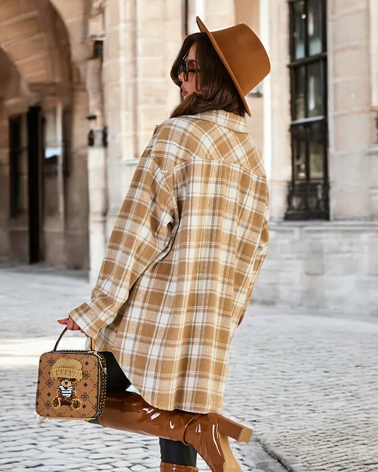 • Stylish women's shirt-type coat with button closure. Over size cut coat has long sleeves and 2 pockets. Great for autumn!