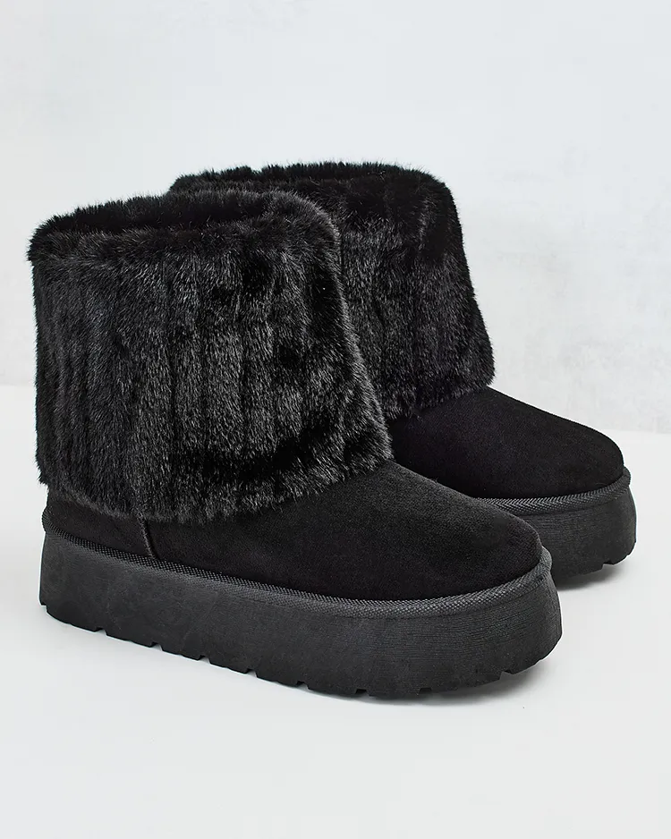 • Great women's winter snow boots on a flat sole. The upper is made of organic suede leather, the middle is insulated with fur. Footwear has a decorative a'la fur. Perfect base for winter!