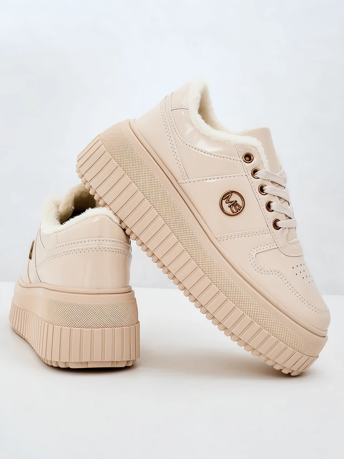 - Sporty women's sneakers on a thicker sole. Lace-up upper, made of ecological patent leather. Interior fully insulated with fur. Ideal for sports outfits!