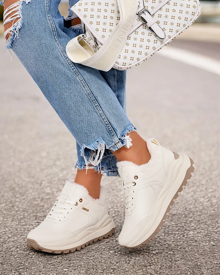 - Women's insulated sneaker sports shoes on a thicker sole. Lace-up upper made of eco leather. Soft fur inside. Super addition to your winter casual outfits!