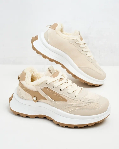 • Women's insulated sneaker sports shoes on a thicker sole. Lace-up upper made of suede ecological leather with eco leather elements. Soft fur inside. Super addition to your winter casual outfits!
